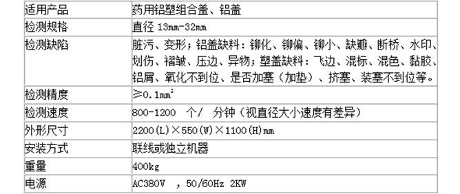 機(jī)器視覺(jué)瓶蓋檢測(cè)系統(tǒng)技術(shù)參數(shù)